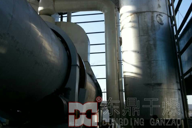 該工程采用東鼎新一代高溫順流滾筒煤泥烘干提質(zhì)技術(shù)。由原料裝載系統(tǒng)(包括打散喂料機(jī)、入料帶式輸送機(jī)等,確保均勻連續(xù)給料)、燃燒供熱系統(tǒng)、干燥脫水系統(tǒng)(選用密封給料箱、螺旋推進(jìn)器、滾筒干燥機(jī)、排料箱等設(shè)備,完成高水分物料與高溫?zé)峤橘|(zhì)的質(zhì)熱交換)、環(huán)保除塵系統(tǒng)(選用旋風(fēng)除塵器、濕式除塵器、引風(fēng)機(jī)等設(shè)備將尾氣經(jīng)初步處理后,送入集中除塵系統(tǒng))、 配電測控系統(tǒng)(選用成套配電裝置、就地箱、溫控傳感器等電氣設(shè)備實(shí)現(xiàn)干燥系統(tǒng)的操控及監(jiān)控)、產(chǎn)品輸送系統(tǒng)六大模塊構(gòu)成,系統(tǒng)具有以下特點(diǎn):1、干燥速度快,處理量大,處理效率高;2、全程封閉,系統(tǒng)配有可靠的防爆系統(tǒng),安全可靠;3、系統(tǒng)高效集成,占地面積小全自動(dòng)控制,現(xiàn)場無人值守;4、采用新型除塵裝置,排放達(dá)標(biāo)。