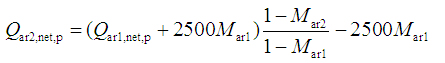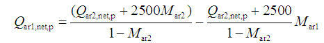 若已知收到基水分含量Mar2和低位發(fā)熱量Qar2,net,p,則脫水后的收到基熱值Qar1,net,p與其水分Mar1的關(guān)系為: